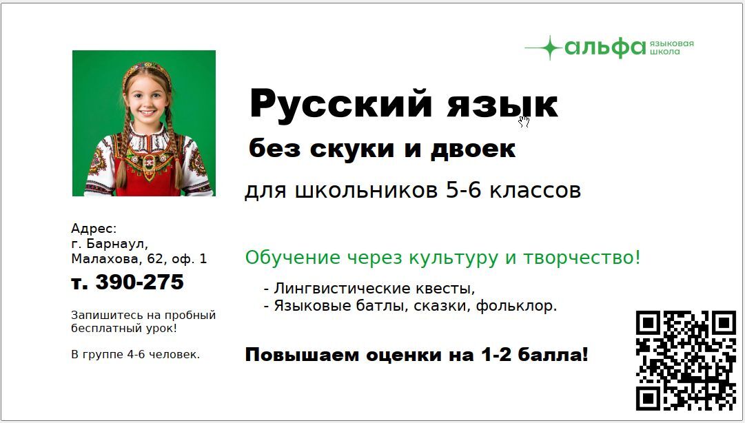 - Первая языковая школа в Барнауле с курсами по русскому языку для школьников